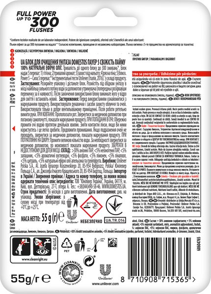 - Блок для очистки унитаза Domestos Power 5 Свежесть Лайма 55г