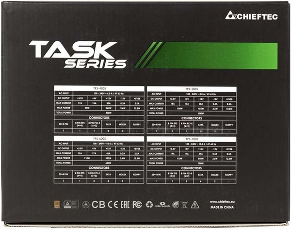 Блоки питания серии Task от CHIEFTEC полностью соответствуют своему имени – они справятся с любым заданием, выполнить которое от них потребуется. С сертификатом по КПД 80PLUS Bronze и всеми современными характеристиками по безопасности, Вы может быть уверены, что этот блок питания всегда эффективно справится с задачей подачи питания. С удлинёнными кабелями в 650 мм для материнской платы и процессора, эти источники питания отлично подойдут и для сборки системы в более крупных корпусах