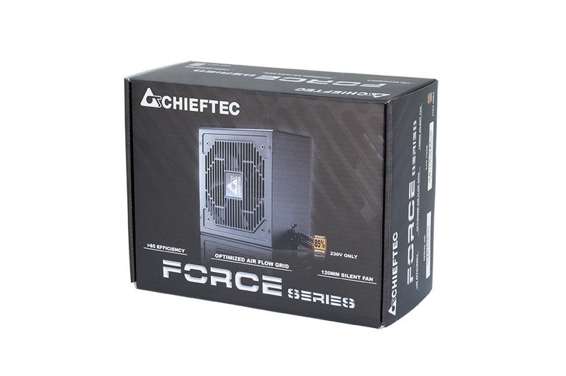 Chieftec представляет новинку на рынке блоков питания - серия Force, в которую вошло сразу пять моделей. Изделия отличаются мощностью и другими спецификациями. Охлаждаются новинки с помощью 120 мм вентилятора, исполнение решений модульное, есть защита от перенапряжения (OVP), перегрузки блока по суммарной мощности по всем выходам (OPP) и пониженного напряжения (UVP), но нет поддержки защиты от перегрузки по току (OCP). Все агрегаты имеют сертификат эффективности 80 Plus Bronze.