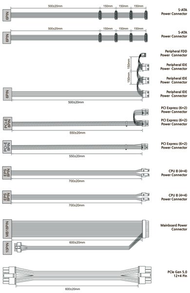| Комплектация (возможны изменения в разных поставках) | Документация, Кабель PCI-E 1-to-1, Кабель PCI-E 1-to-2, Кабель PCI-E 16-pin, Кабель SATA 1-to-4 - 2 шт., Кабель питания, Кабель питания материнской платы, Кабель процессора - 2 шт., Кабельная стяжка - 5 шт., Комплект винтов, Мешочек, Периферийный кабель 1-to-4 |