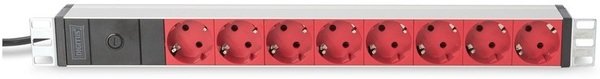 Блок розеток DIGITUS 1U, 8xSchuko red, 10A, 250V, предохранитель, вилка C14