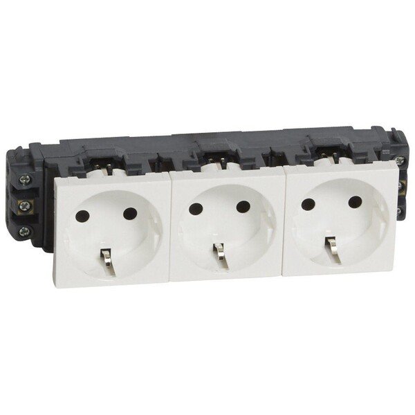 - Блок розеток MOSAIC Legrand 3хSchuko для каб. кан DLP, Quintella (16А, 250В, винт клем) 6мод, белый