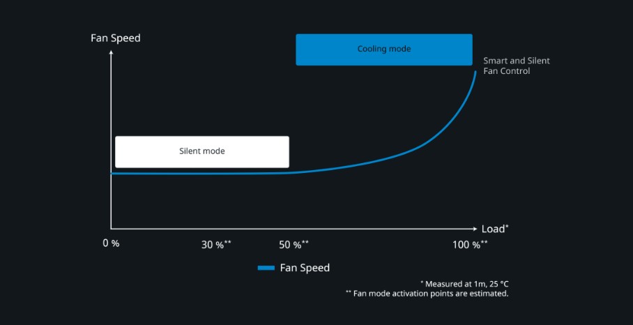 Интеллектуальная функция терморегулирования предназначена для поиска оптимального баланса между необходимостью охлаждения компонентов и потребностью в максимально бесшумной работе блока питания.