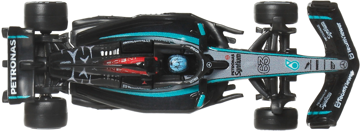 Культовый болид Mercedes-Benz Джорджа Расселла из чемпионата Formula 1 2024 выполнен с максимальной точностью до деталей. Болид выполнен в масштабе 1:64, оснащен колесами Real Riders и имеет металлический корпус и шасси.