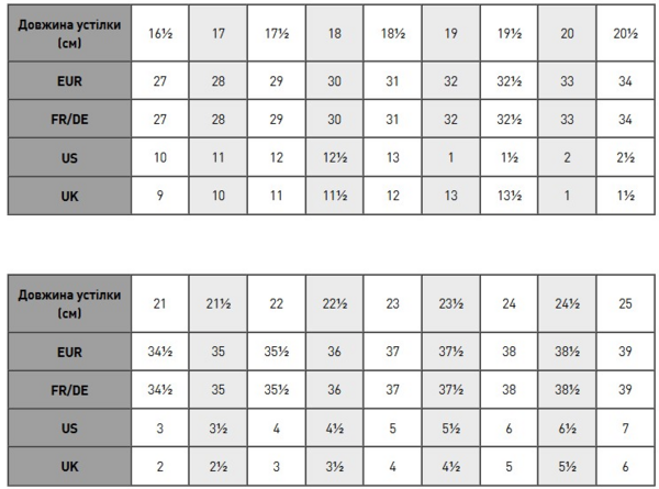 | Длина ступни, см | 25 |
