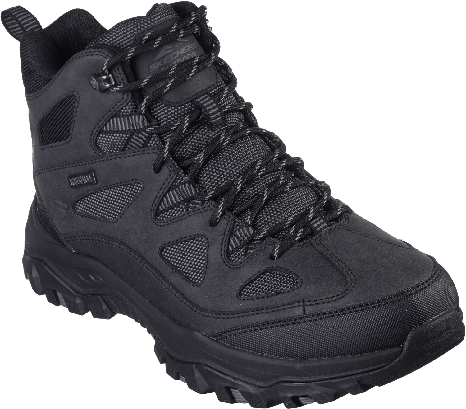 Выходите на улицу в дождь или солнце в ботинках Skechers Relaxed Fit: Rickter - Bodine. Эти водонепроницаемые треккинговые ботинки имеют удобный верх из прочной кожи и синтетического материала, шнуровку спереди и стельку с пеноматериалом Skechers Air-Cooled Memory Foam.