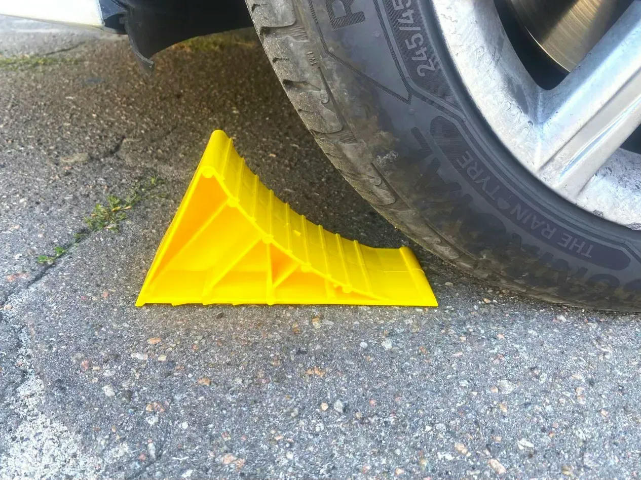 Ботинок противооткатный Poputchik пластик желтый 220х80х115 1шт (16-040)