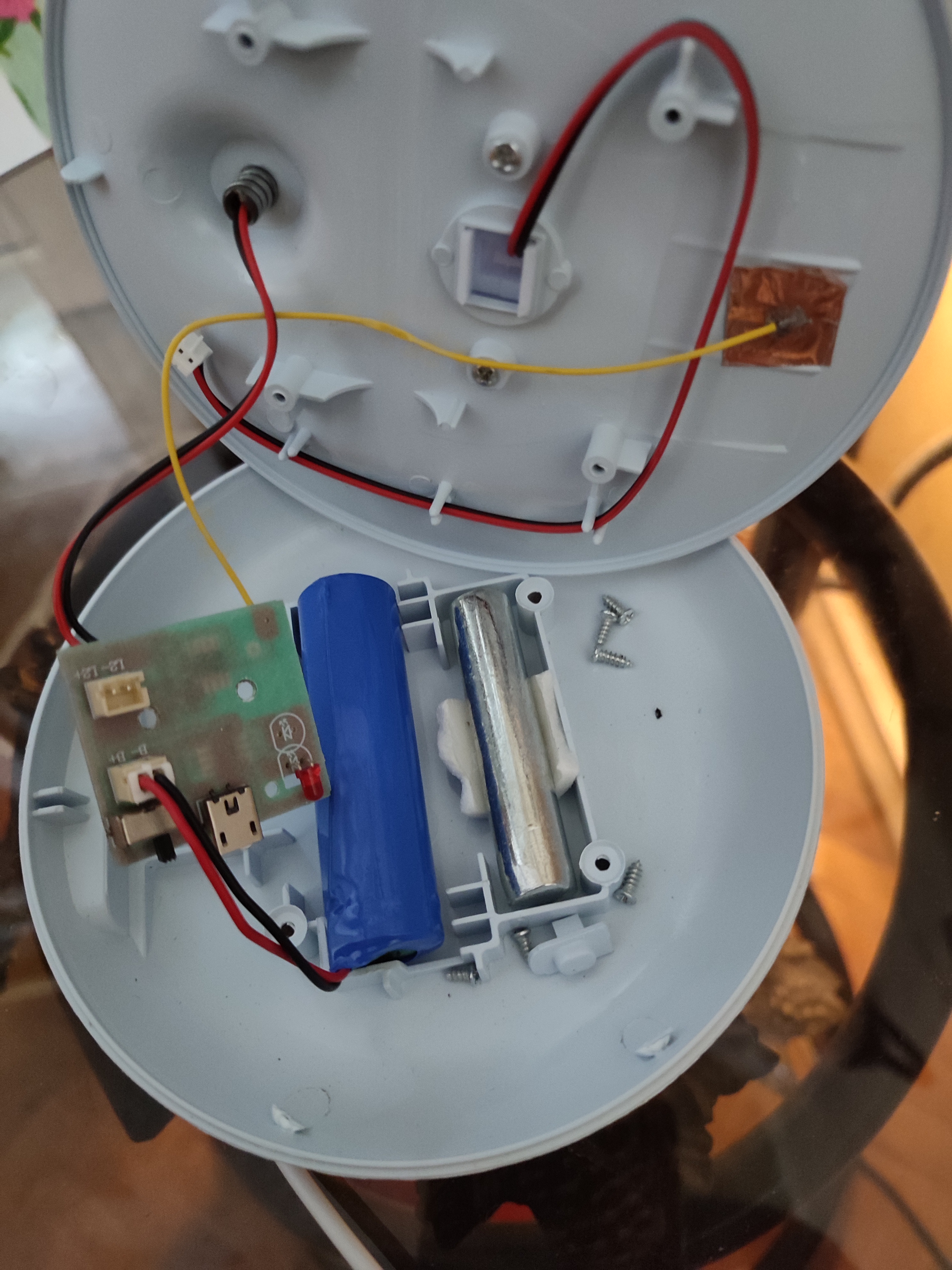 Купив три різні лампи цієї лінійки. Що хорошого - всі лампи мають п'ять режимів роботи (тьмяний і яскравий робочий - світиться основний ліхтар світильника у виносному диску - для роботи за столом; тьмяний і яскравий нічник - світиться голова тваринки; комбінований режим - світиться і диск і голова). Режими переключаються послідовним натисканням на сенсор на корпусі. Пластик якісний - не кришиться і не тхне. Гнучкий тримач диску вкрито якісним силіконом, приємним на дотик. Заряджається від USB порта, має вимикач і індикатор заряджання, який гасне, коли світильник повністю заряджено. Під капотом (дивись фото) достатньо потужний акумулятор, який тримає всю ніч в режимі нічника - перевірено на дітях ) Мінуси - частина компонентів на платі явно розпаювалися вручну і доволі неякісно. Одна з ламп втрачала контакт з портом зарядки і не могла зарядитися нормально. Інший недолік - хливке з'єднання голови тваринки з тулубом. Там не різьба, а притискні фіксатори на чверть оберта, які не витримують невдалого падіння - тож можливо вам теж доведеться саджати голову на місце на термоклей ;)
