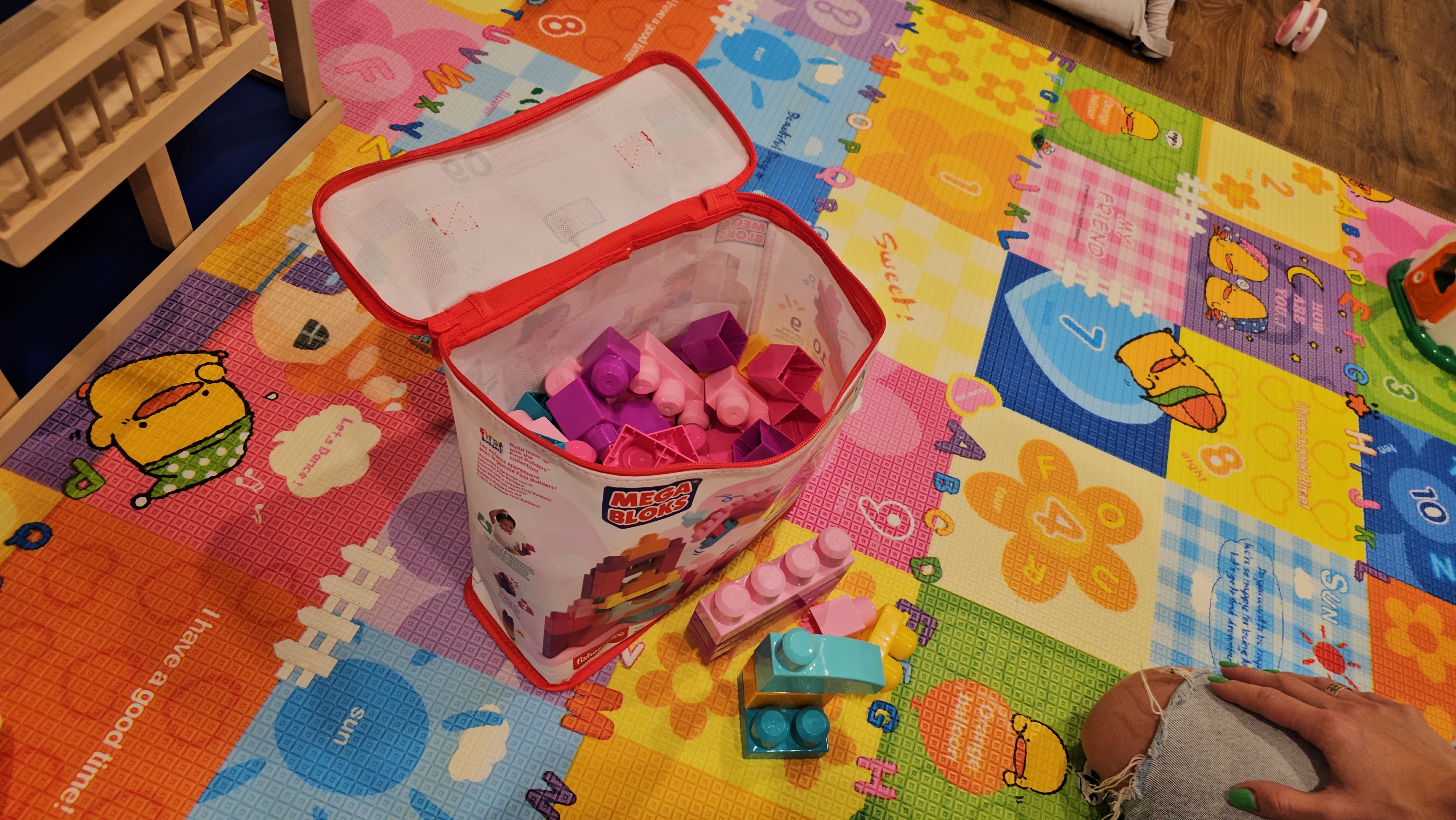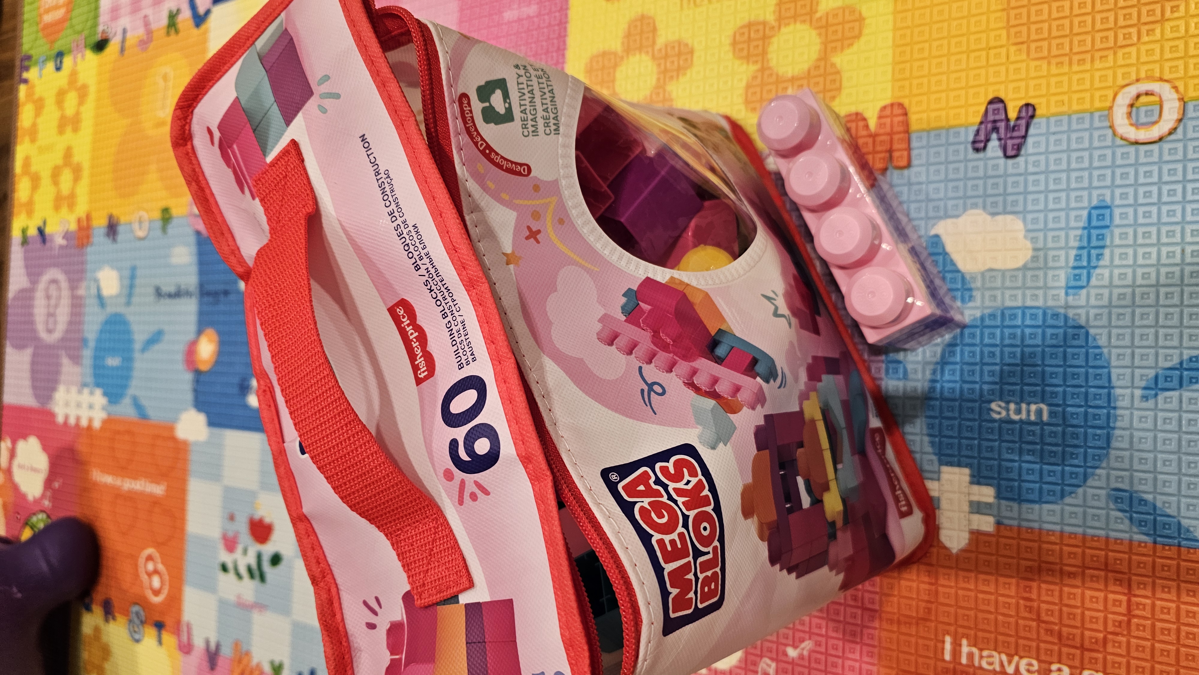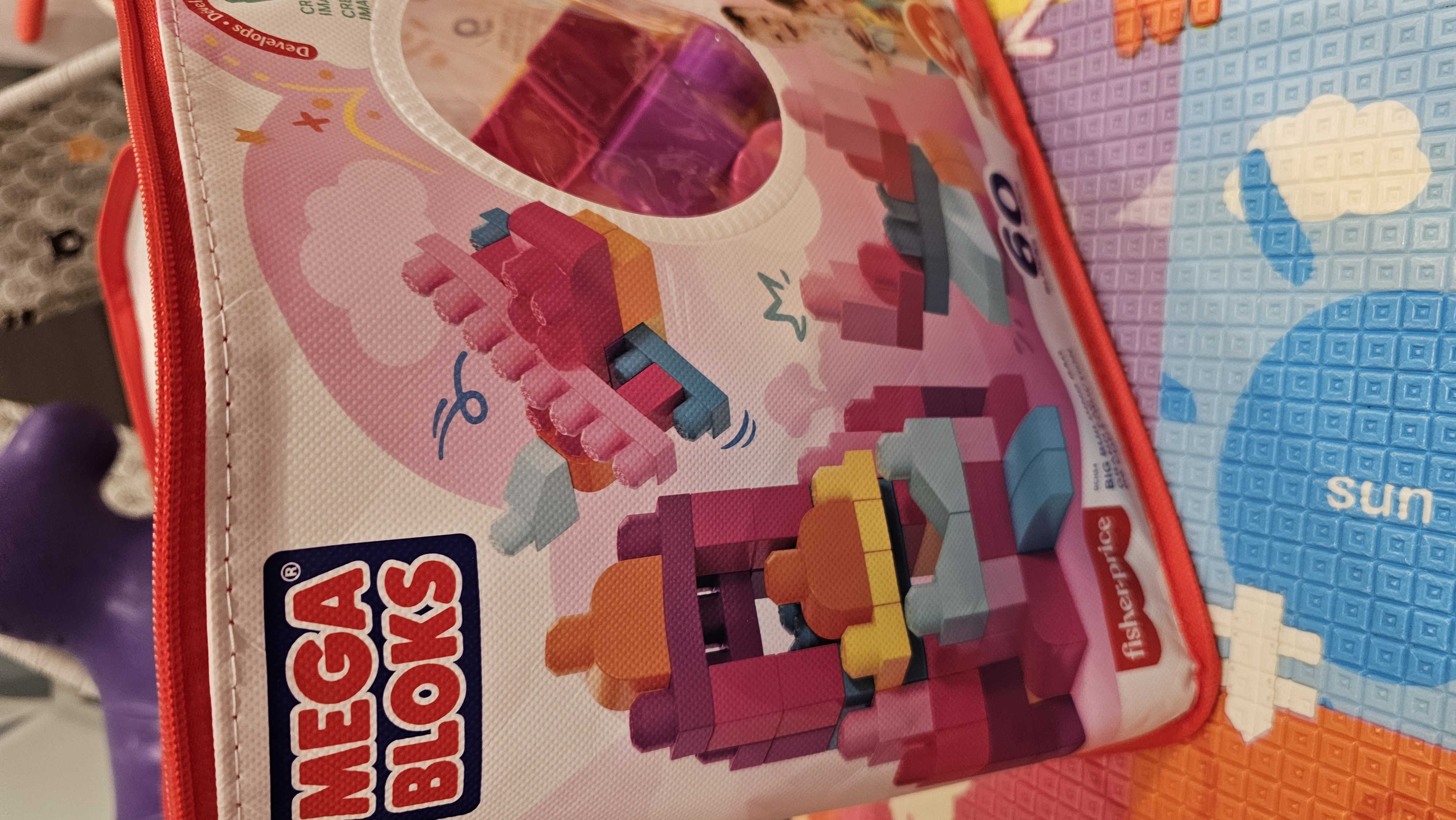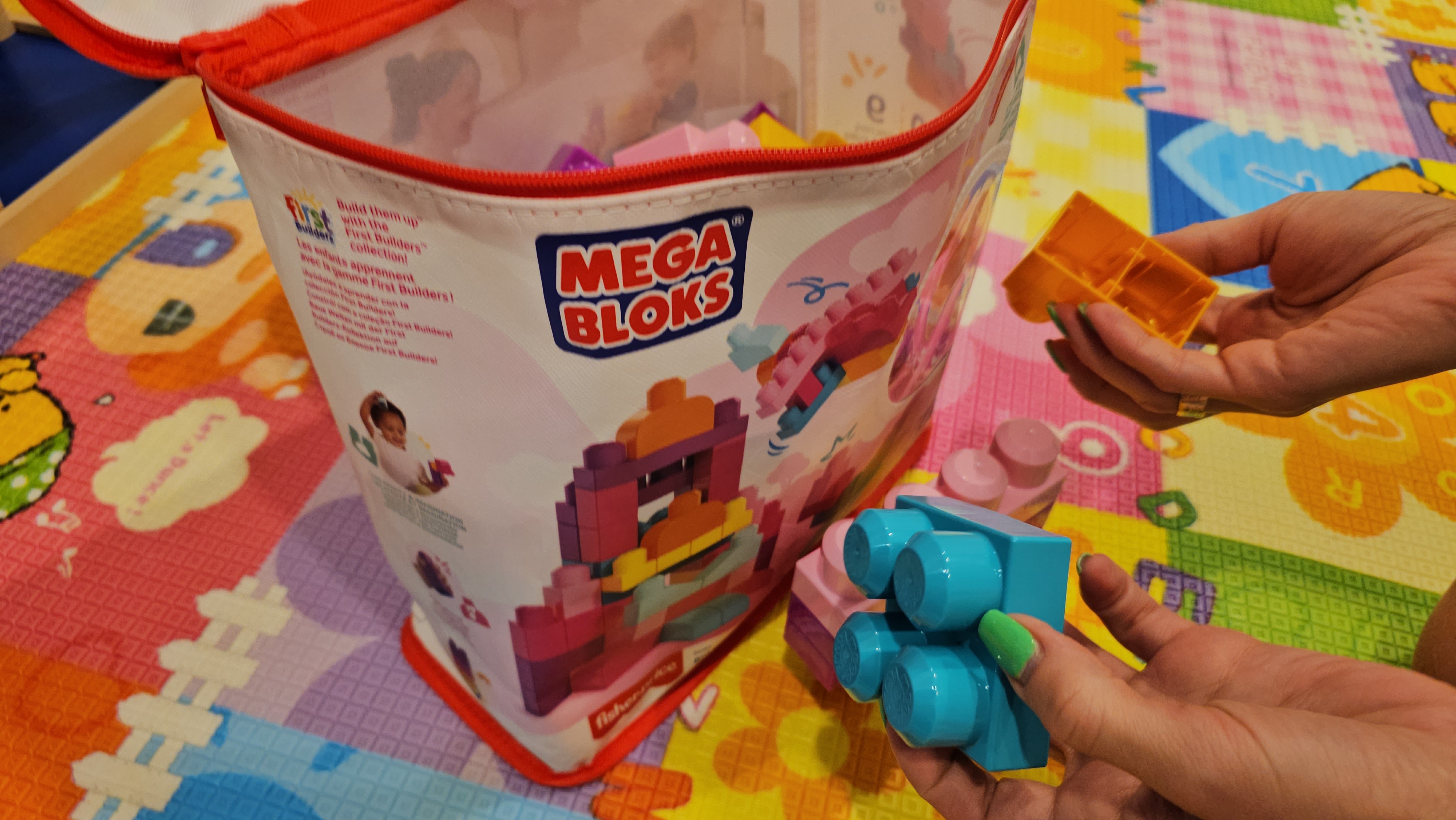 Покупали старшему сыну конструктор, никак не хотел делиться с сестрой. Решили подарить такой же, но случайно увидели конструктор Mega Bloks розовый, и проблема решена!) Дочка очень довольна, ведь у нее есть свой, "девчачий" конструктор. Сумочка стала еще одним бонусом;). Качество конструкторов этой фирмы хорошее, берем не первый раз, все детали крупные, очень удобно.