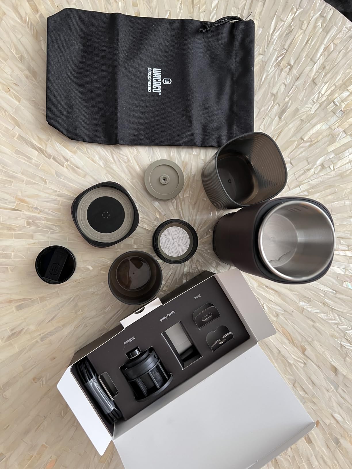 Класна річ для тих, хто не уявляє день без кави. Брав її у подорож, справді зручна, компактна й легка. Каву готує насичену та ароматну, без електрики, лише потрібна вода і сама кава. У комплекті є дві чашки, дрібниця, але приємна. Нічого не протікає, усе продумано до дрібниць. Мити легко, збирається за хвилину. Вигляд приємний, не дратуючий.