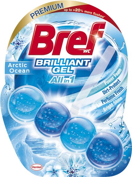 Туалетный блок для унитаза Bref Блестящий гель Арктический океан – первый гелевой туалетный блок премиум-класса.