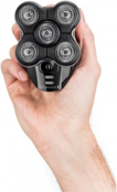 Для очищування Бритви для голови Remington XR1500 Ultimate Series RX5 (XR1500) достатньо промити саму бриючу пластину під водою, тоді зняти її та очистити кишеню для волосся - корпус водонепроникний. Від мережі не працює, але заряджається всього 2 години.