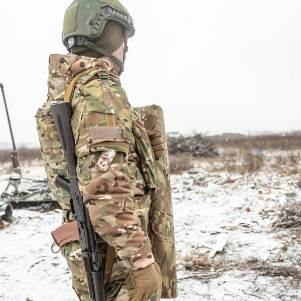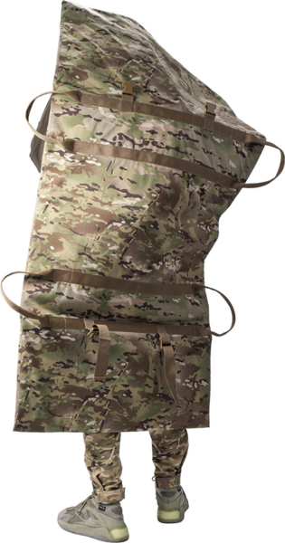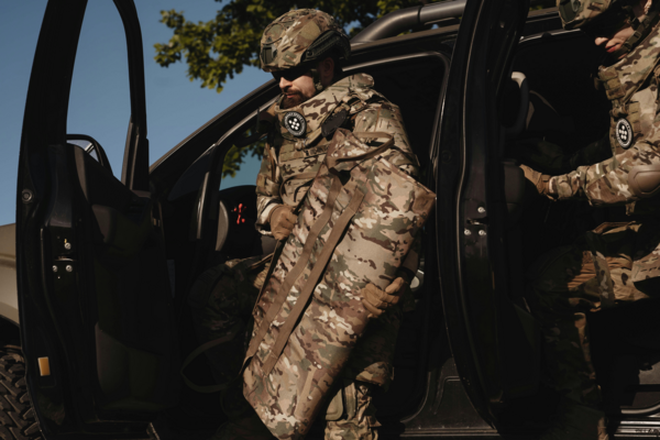 Защищает при перемещении по открытым участкам местности пешком или верхом на бронемашине, когда военный наиболее уязвим для стрелковых засад, обломков переносного осколочно-фугасного оружия противника и т.д.