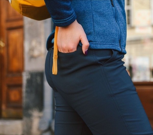 Удобные женские брюки для городской зимы и комбинированных путешествий (город+приключение). Утепленный тонким микрофлисом эластичный Softshell-материал. В них комфортно в ветреную влажную погоду межсезонья. На путешественнике они не выглядят спортивными, потому что имеют классический крой и лаконичный сдержанный дизайн. Подойдут к кэжуальной, урбанистической одежде. Брюки имеют два стандартных по виду, однако глубокие и практичные карманы для рук и один карман на молнии сзади. Они практичны в путешествиях, где комбинируются исследования города и короткие прогулки по природе.
