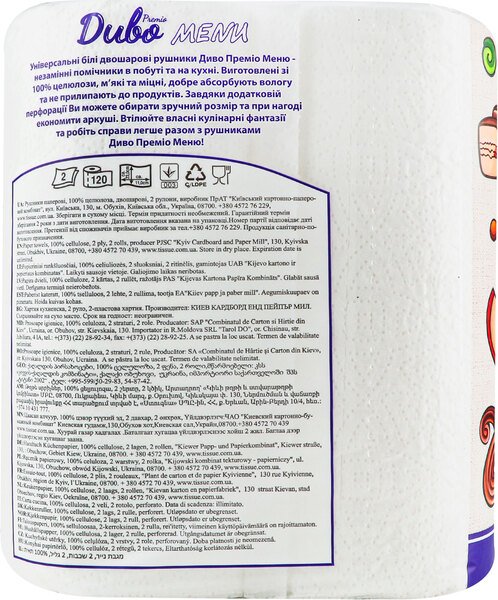 - Бумажные полотенца Диво Premio Menu 2 слоя 2шт