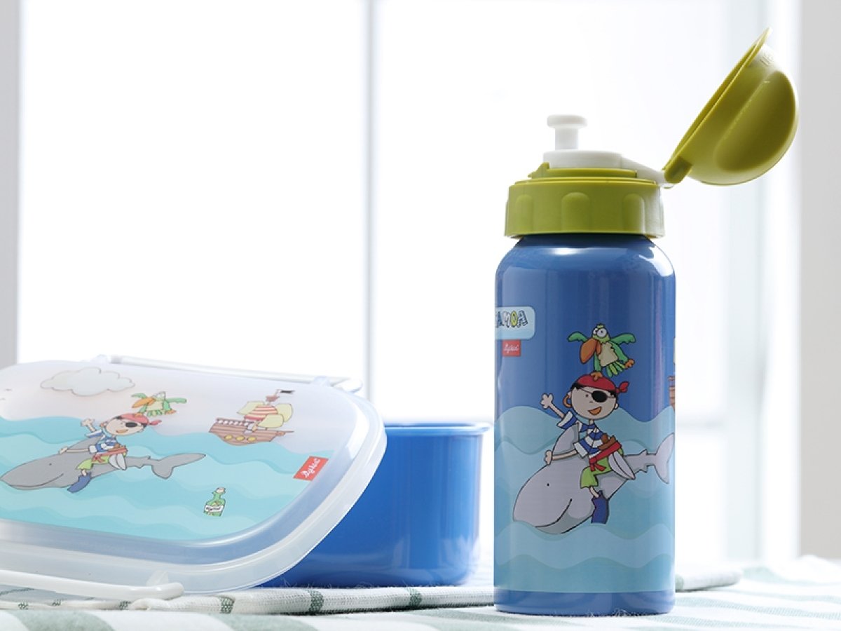 «Sammy Samoa» - практичная детская бутылочка для воды от немецкого бренда sigikid. Бутылочка голубого цвета с ярким рисунком, на котором изображен пират в море, понравится парням. Вместимость 400 мл. Крышка надежно закрывается, а специальный носик позволяет удобно пить воду. В конструкции клапана есть силиконовые вставки, которые герметизируют бутылочку. Материалы безопасны для здоровья: колба произведена из металла, крышечка и носик - из полипропилена.