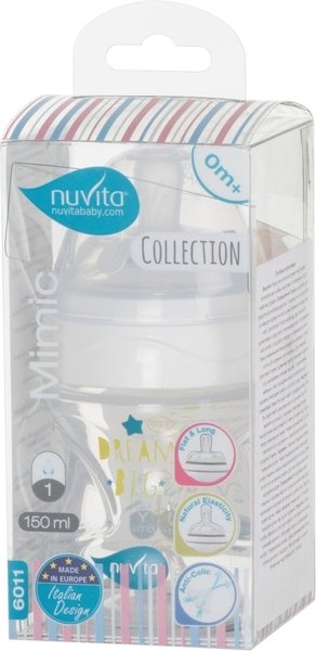 Бутылочка для кормления Nuvita NV6011 Mimic Collection 150мл. 0м+ Антиколиковая, белая (NV6011BIANCO)