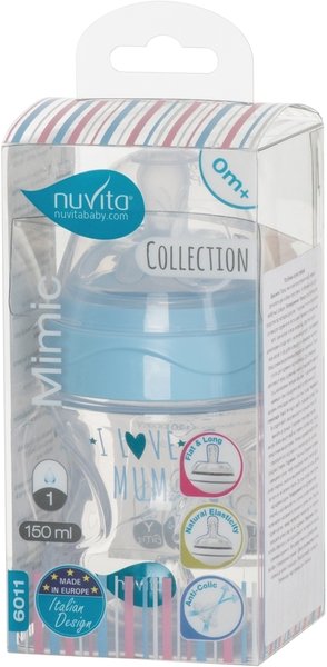 - Бутылочка для кормления Nuvita NV6011 Mimic Collection 150мл 0м+ Антиколиковая, синяя (NV6011AZZURO)