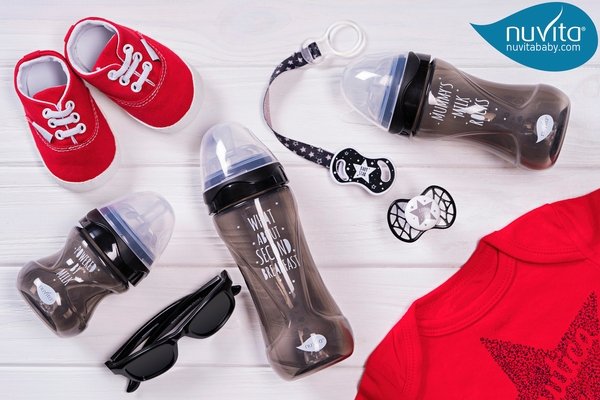 - Бутылочка для кормления Nuvita NV6032 Mimic Cool 250мл 3м+ Антиколиковая, черная (NV6032BLACK)