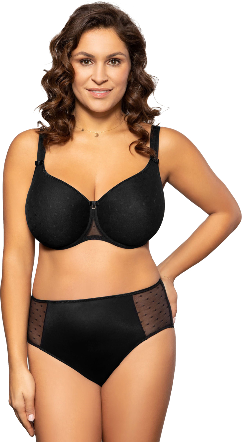 - На чашке бюстгальтера есть фатин, делающий модель более привлекательной. Фатин также встречается по бокам бюстгальтера, подчёркивая лёгкость модели.