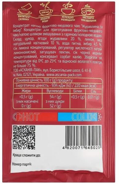 - Чай Асканія журавлина-имбирь концентрированный саше 50 г