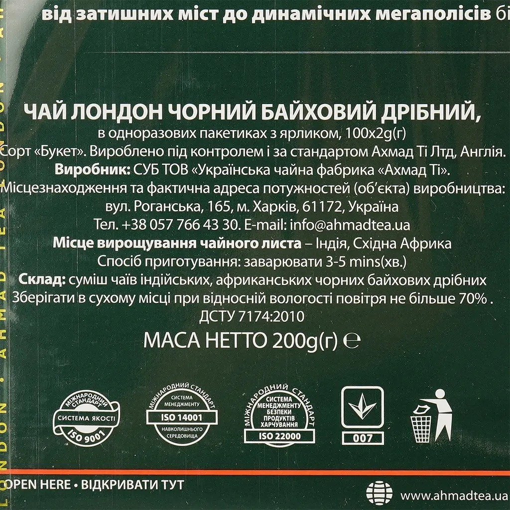 Чай чёрный Ahmad Tea Лондон байховый 100 шт