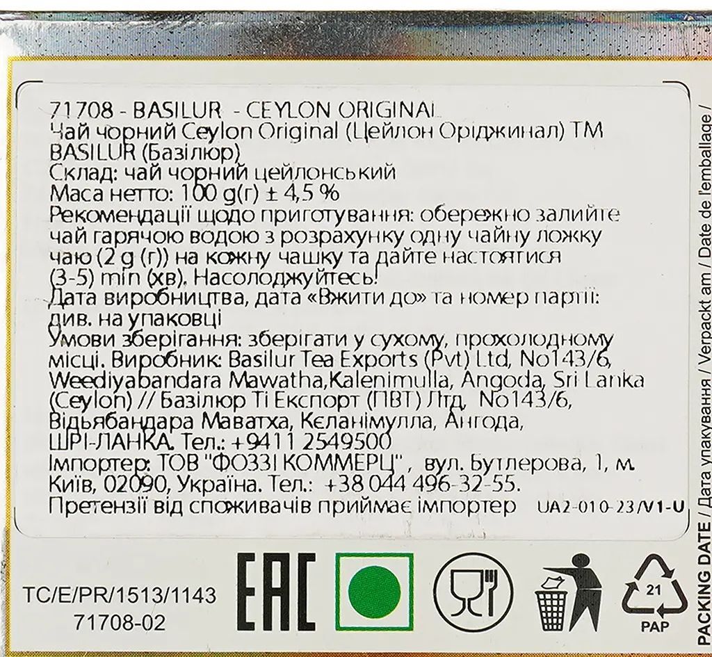 - Чай чёрный Basilur Oriental ceylon original 100 г