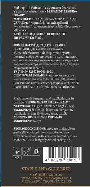 Чай чёрный Graff Бергамот и ваниль 20 шт