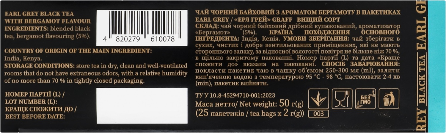 - Чай чёрный Graff Эрл Грей 25 шт