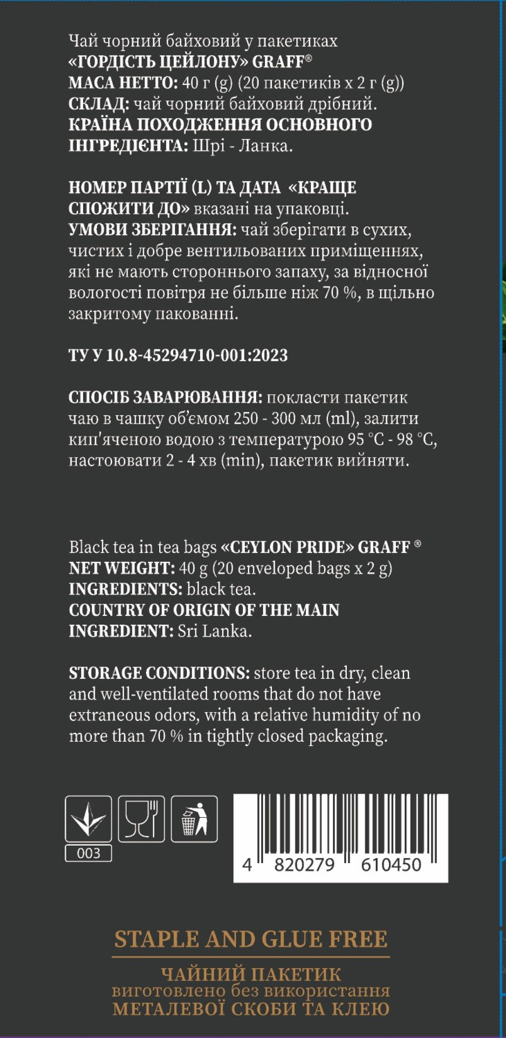 - Чай чёрный Graff Гордость Цейлона 20 шт