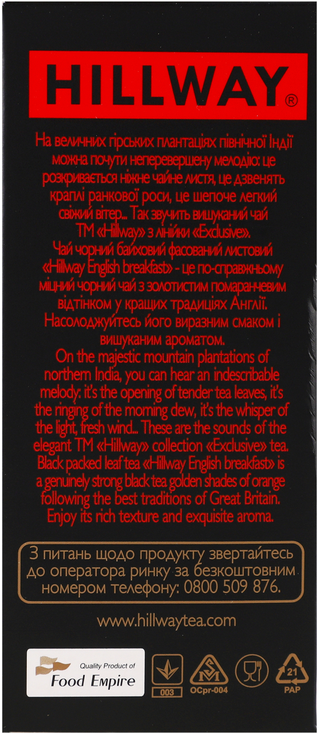 - Чай чёрный Hillway English Breakfast байховый листовой 100 г