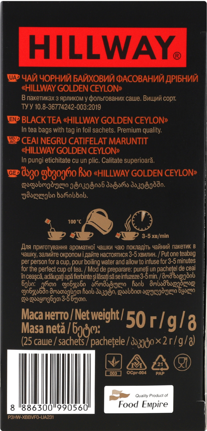 - Чай чёрный Hillway Exclusive Golden Ceylon байховый 25 шт