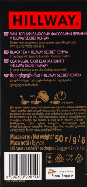 - Чай чёрный Hillway Secret Kenya байховый 25 шт