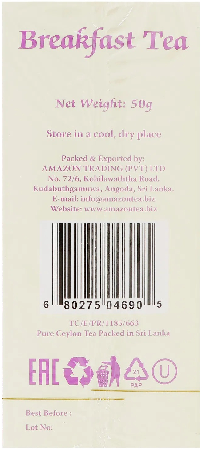 Чай Tea of Life "Breakfast Tea" — это черный байховый чай в пакетированном формате. Создан специально как классический "утренний чай", который отличается крепостью, насыщенным вкусом и ярким цветом настоя. Это идеальный выбор для утреннего чаепития.