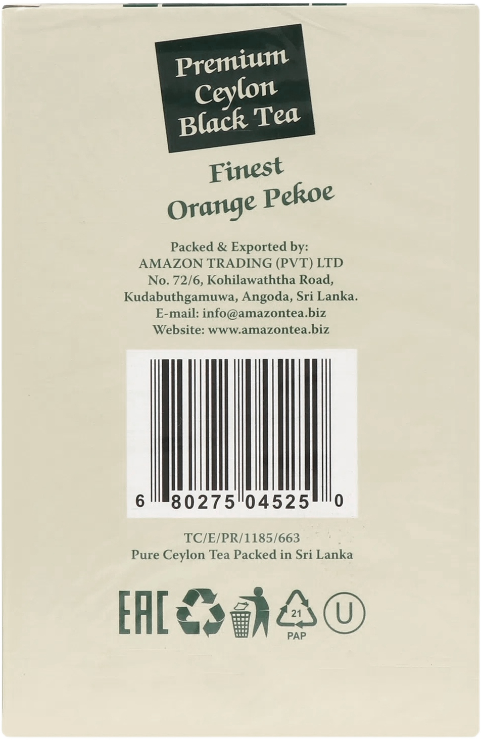 Чай Tea of Life "Finest OP" (Orange Pekoe) — это черный байховый крупнолистовой чай. Этот чай — выбор для любителей классического, чистого вкуса цейлонского чая.