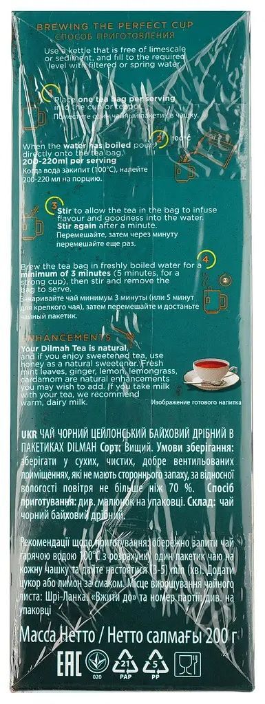 Чай черный Dilmah Премиум дарит наслаждение вкусом в любое время дня. Dilmah - это чай Шри-Ланки, который продается на международном уровне. Компания была основана в 1988 году Меррилл Дж. Фернандо. Dilmah является уникальным брендом, основанным на страстном стремлении к достоверности и качеству в чае, который является частью философии, которая выходит за пределы коммерции и определяет бизнес как средство заботы о людях.
