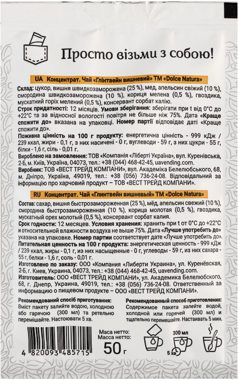 - Чай Dolce Natura Глинтвейн вишневый концентрат 50 г