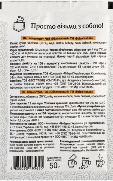 - Чай Dolce Natura Облепиховый концентрат 50 г
