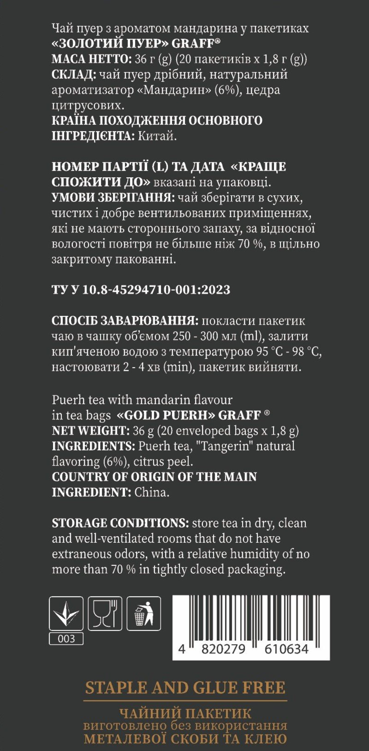 - Чай Graff Золотой Пуэр с ароматом мандарина 20 шт