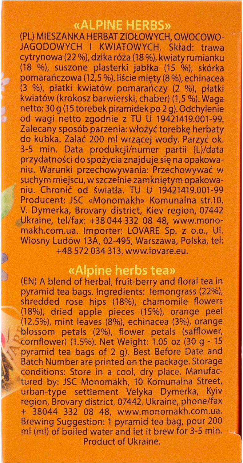 - Травяной чай Lovare Alpine Herbs 15 шт