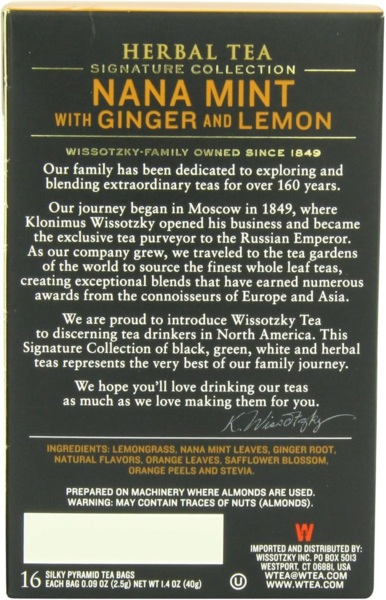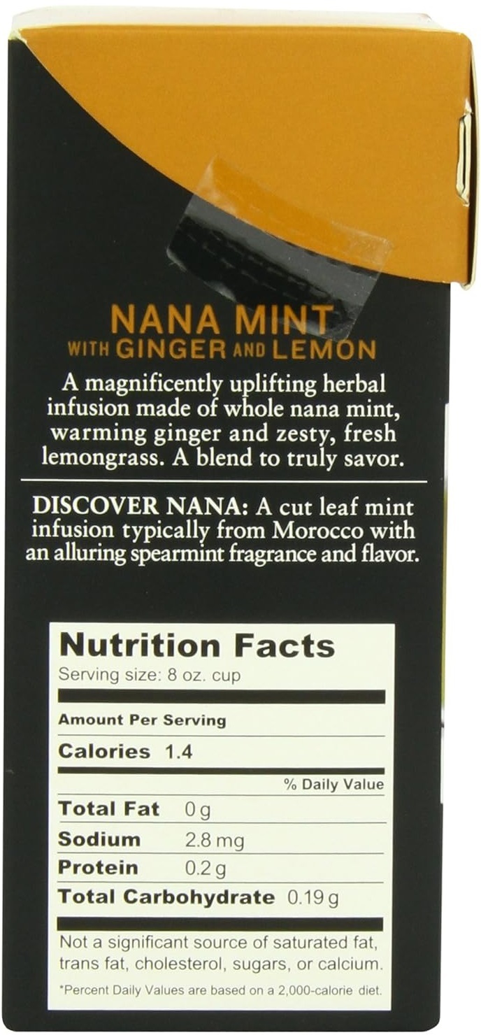 Свежий вкус экзотической мяты Нана приобретает пикантный оттенок в чае Nana Mint Tea with Ginger and Lemon. Каждый из 16 пирамидных пакетиков наполнен высококачественным чаем и натуральными ингредиентами, обеспечивающими роскошный вкус горячего напитка, который понравится. Одноразовые пакетики позволяют быстро и легко приготовить идеальную чашку чая.
