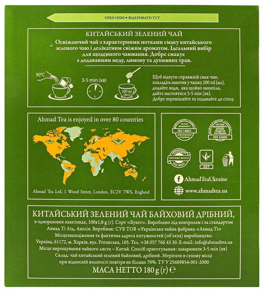 Чай зелёный Ahmad tea Китайский 100 шт