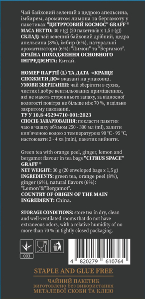 - Чай зелёный Graff Цитрусовый космос 20 шт