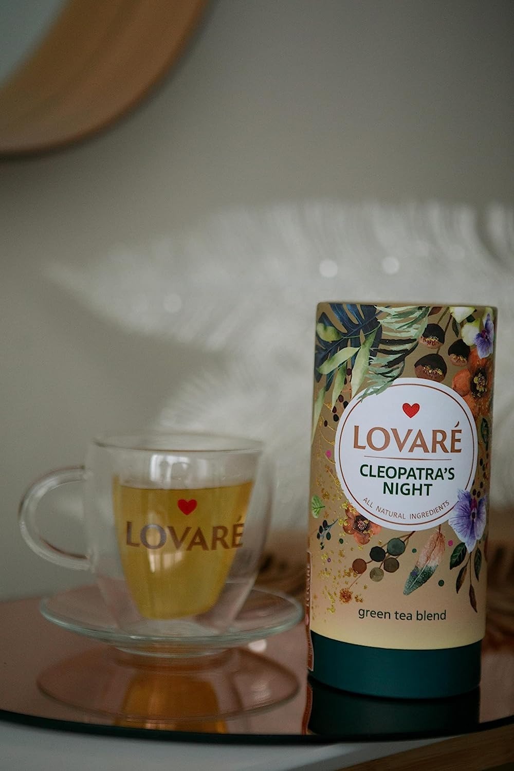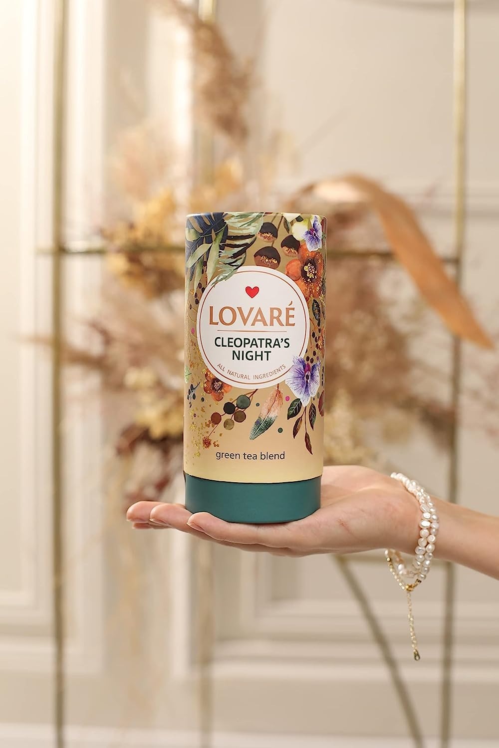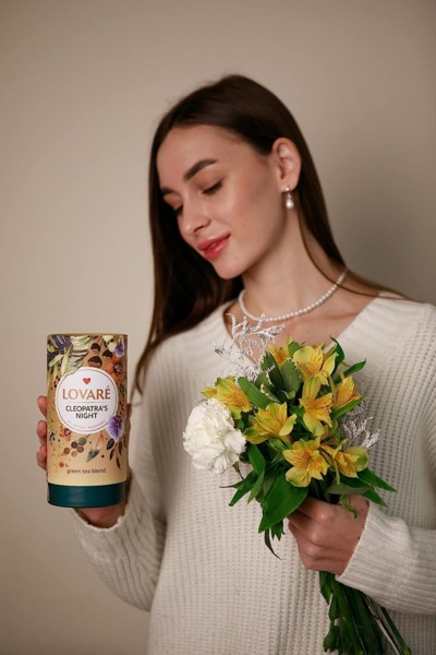 Ценные моменты изысканной страсти становятся бриллиантами в сокровищнице воспоминаний вместе с великолепной чайной смесью "Cleopatra's Night" от Lovare — китайским зеленым чаем Gun powder, кусочками ананаса и яблока, лепестками розы, васильком и сафлором, бутонами китайской розы и ягодами годжи.