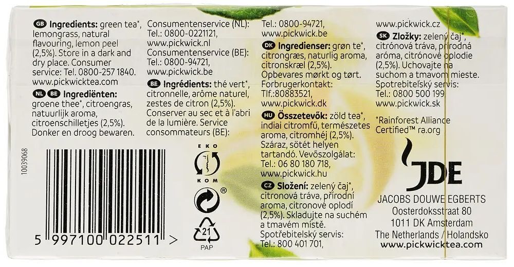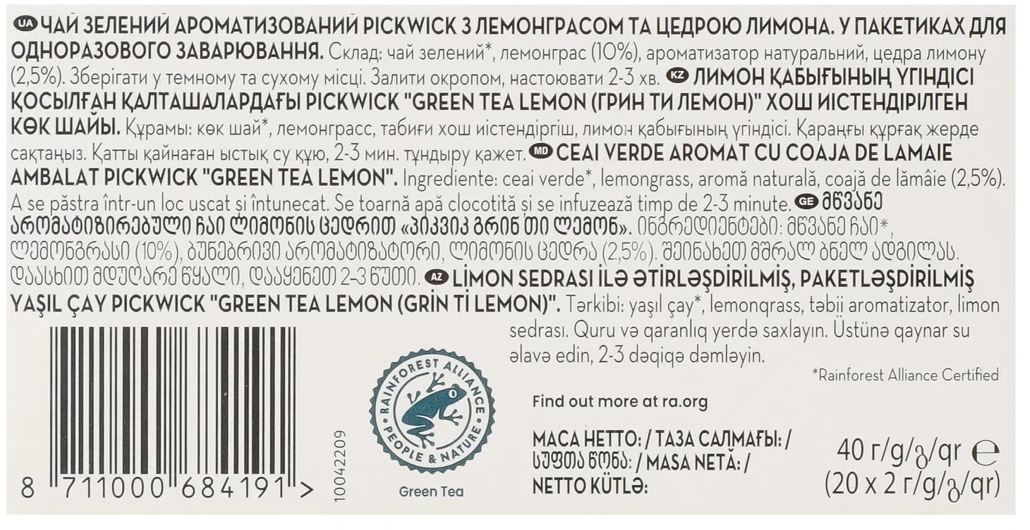 - Чай зелёный Pickwick с лемонграссом и цедрой лимона 20 шт