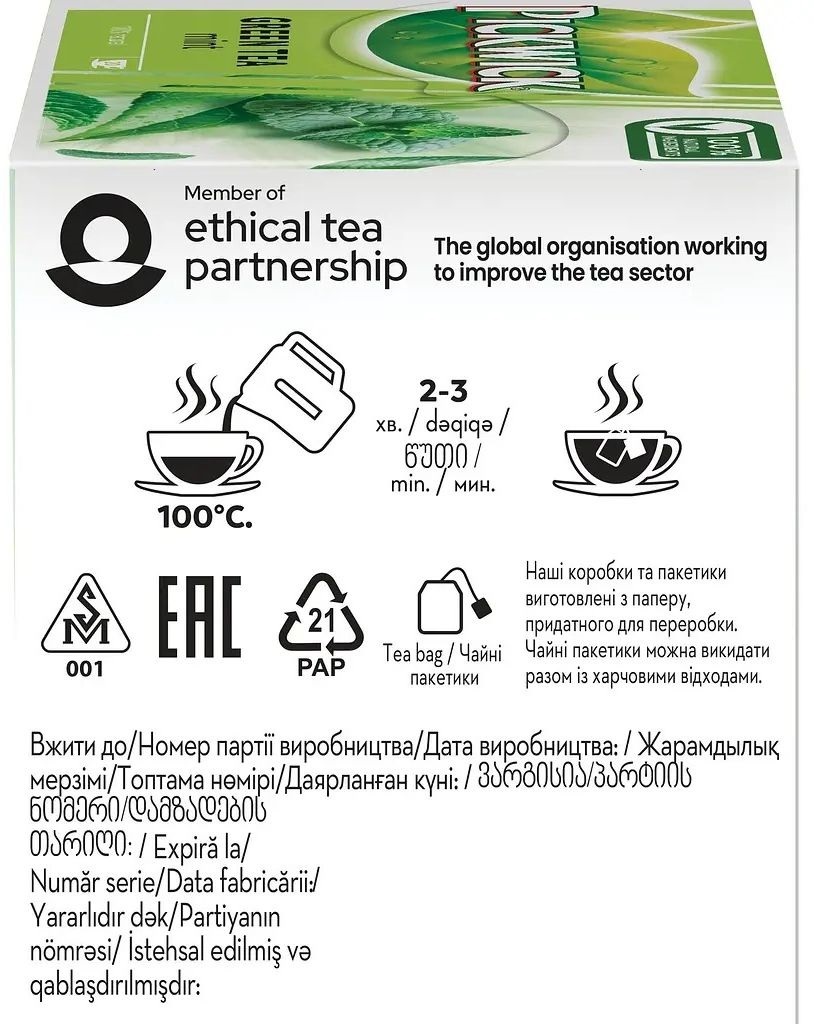 Чай зеленый Pickwick Mint с мятой – это освежающий напиток Pickwick, сочетающий нежный вкус зеленого чая с прохладными нотками мяты. Каждый пакетик содержит смесь зеленого чая и натуральных листьев мяты, что создает легкий, тонизирующий вкус без кофеина. Идеально подходит для ежедневного употребления или расслабления вечером. Изготовлен из натуральных ингредиентов без искусственных ароматизаторов, чай поддерживает здоровый образ жизни и дарит ментоловую свежесть.