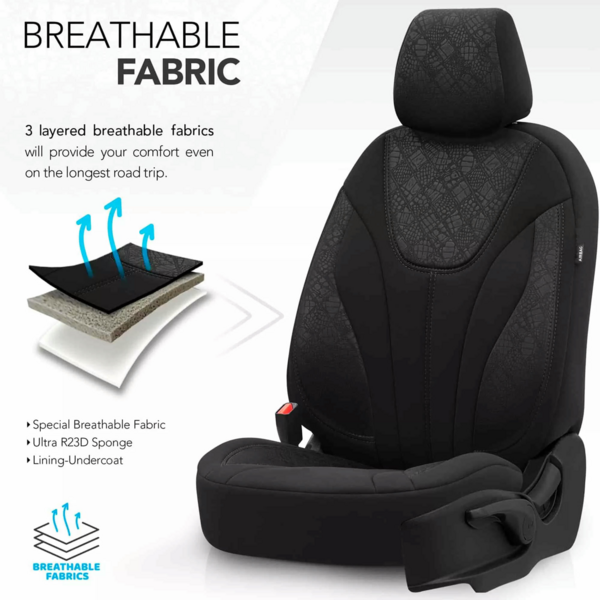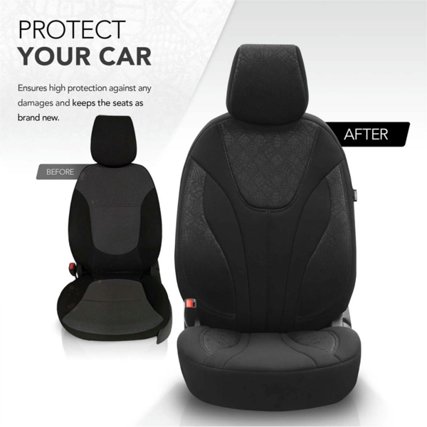 - Современные узоры чехлов освежают интерьер автомобиля и придают ему стильный вид.