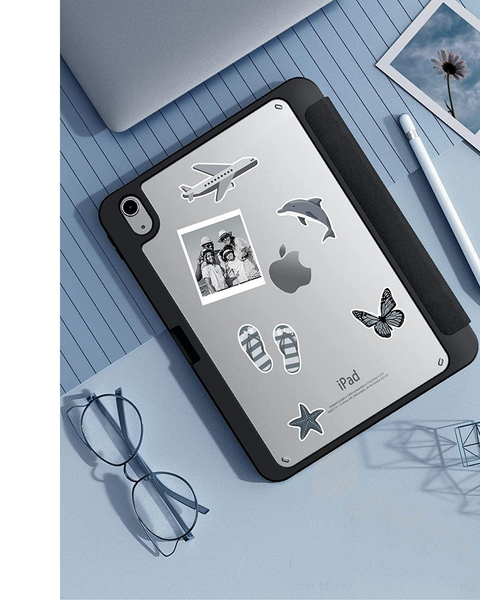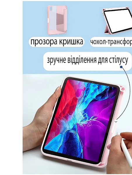 Задняя крышка чехла изготовлена из прочного, прозрачного поликарбоната. Обложку также очень удобно использовать как подставку, благодаря чему вы сможете комфортно работать с текстом, рисовать или смотреть фильмы. Также обложку можно отсоединить от чехла, чтобы удобнее использовать планшет, держа его в руках.