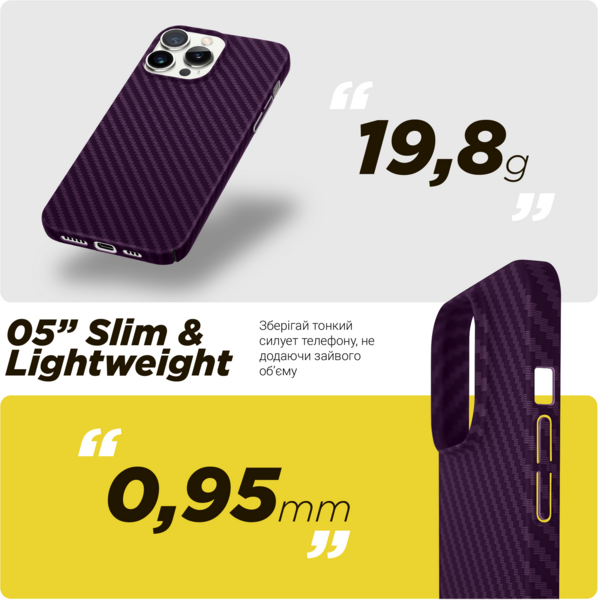Он тоньше и легче большинства защитных чехлов. Сверхпрочный материал с текстурой карбонового волокна приятный на ощупь, устойчивый к загрязнениям.
