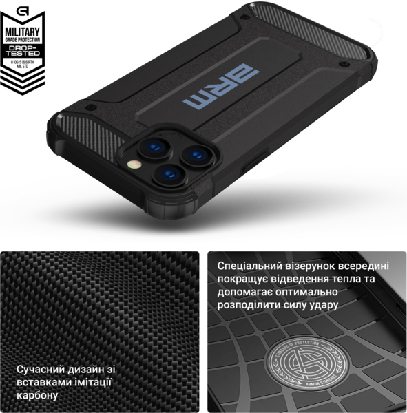 - Чехол ArmorStandart Panzer для Apple iPhone 14 Pro Black (ARM70799)